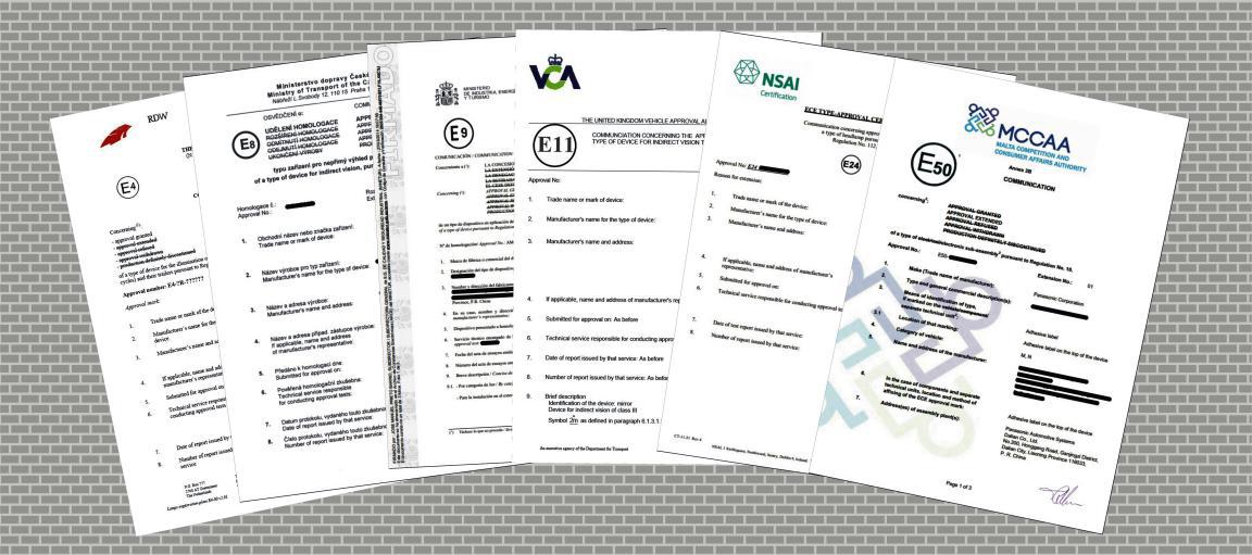 ECE证书主要是由欧盟成员交通部授权机构国签发,并且任一欧盟成员国签发的证书在其它成员国都能获得相互认可。同时,证书上都会体现出发证国家的编号以及机构的标志。比如,E4荷兰,发证机构为荷兰交通部车辆认证中心(标志为RDW),其证书上体现的证书号为E4-XXXXX,并证书页的上并带有RDW标志。