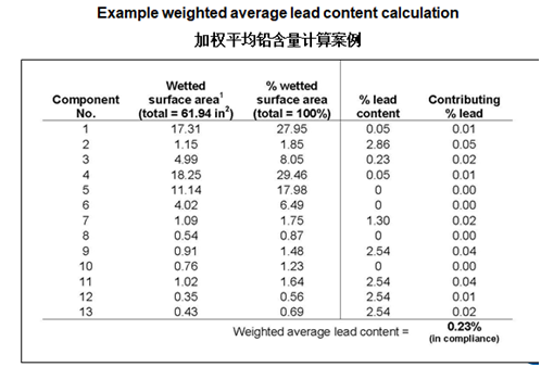 3、如果零部件的过水表面经过洗铅、表面处理等铅除去工艺,计算此零件的铅含量,应使用未经过任何处理的散装原材料的铅含量。